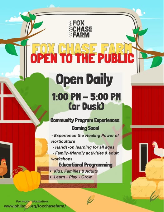 Friends of Fox Chase Farm (FFCF) is a 501(c)3 organization and all volunteer group of over 200 member families. It was formed in 1990 to assist the Fairmount Park Commission in maintaining and preserving this pastoral treasure.